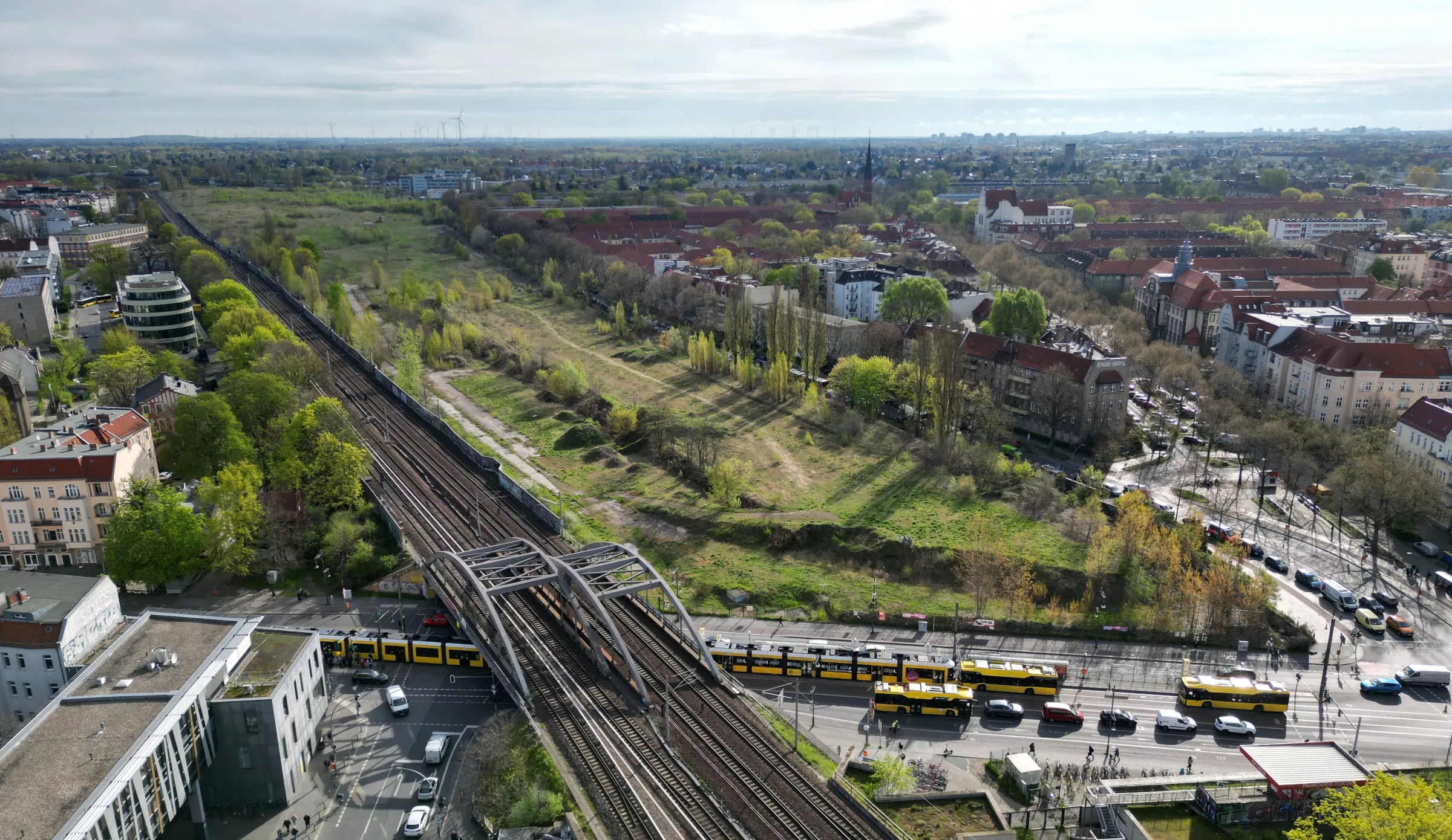 Das Pankower Tor befindet sich im Norden von Berlin im Bezirk Pankow. Mit der Quartierneuentwicklung werden auf Basis des städtebaulichen Masterplans von Nöfer Architekten, Christoph Kohl Stadtplanern sowie Fugmann Janotta Landschaftsarchitekten auf 27 Hektar 2000 neue Wohnungen, 2 Grundschulen, 1 Kita sowie Sozialeinrichtungen und Gewerbe entstehen. Als Pufferzonen zwischen neuer Bebauung und der bestehenden S-Bahntrasse soll eine öffentliche Grünfläche entwickelt werden, die Sie im Studio in Gruppen- und Einzelarbeit als zeitgenössichen Park mit eigenständig intensivem Raumerlebnis entwerfen.