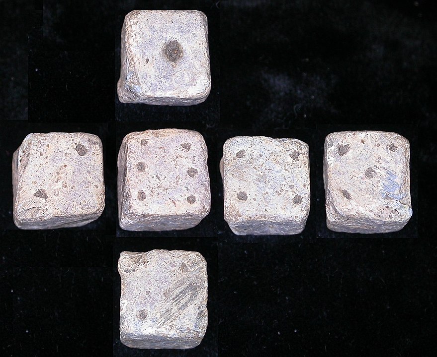 Kursfoto: The Portable Antiquities Scheme/ The Trustees of the British Museum, Roman lead dice. A cube measuring 12x12x12mm, with one to six impressed dots on each face. URL: